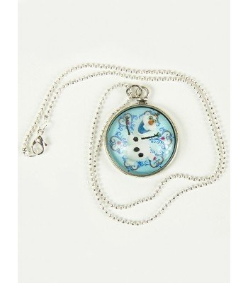 Подвеска Снеговик Олаф Холодное Сердце - круглая подвеска с зимним изображением снеговика Олафа из мультфильма "Холодное Сердце". С обратной стороны подвеска сделана в виде имитации часов. Крепится на тонкую серебристую цепочку.