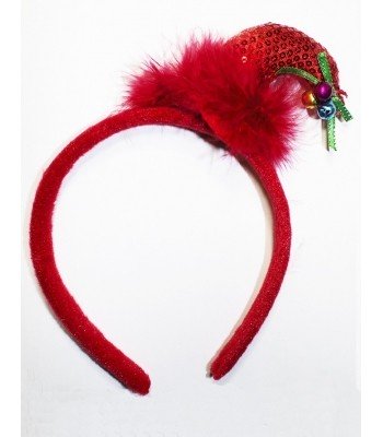 Красный ободок с мини-колпаком - яркий ободок, который идеально подойдет для новогодней или рождественской вечеринки. Ободок с красным мини-колпаком с пайетками и цветными бубенцами.