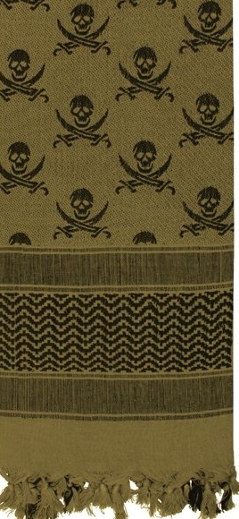 Шемаг с черепами оливковый 8539.