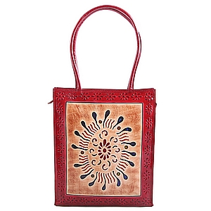 Сумка натуральная кожа ручной принт №120