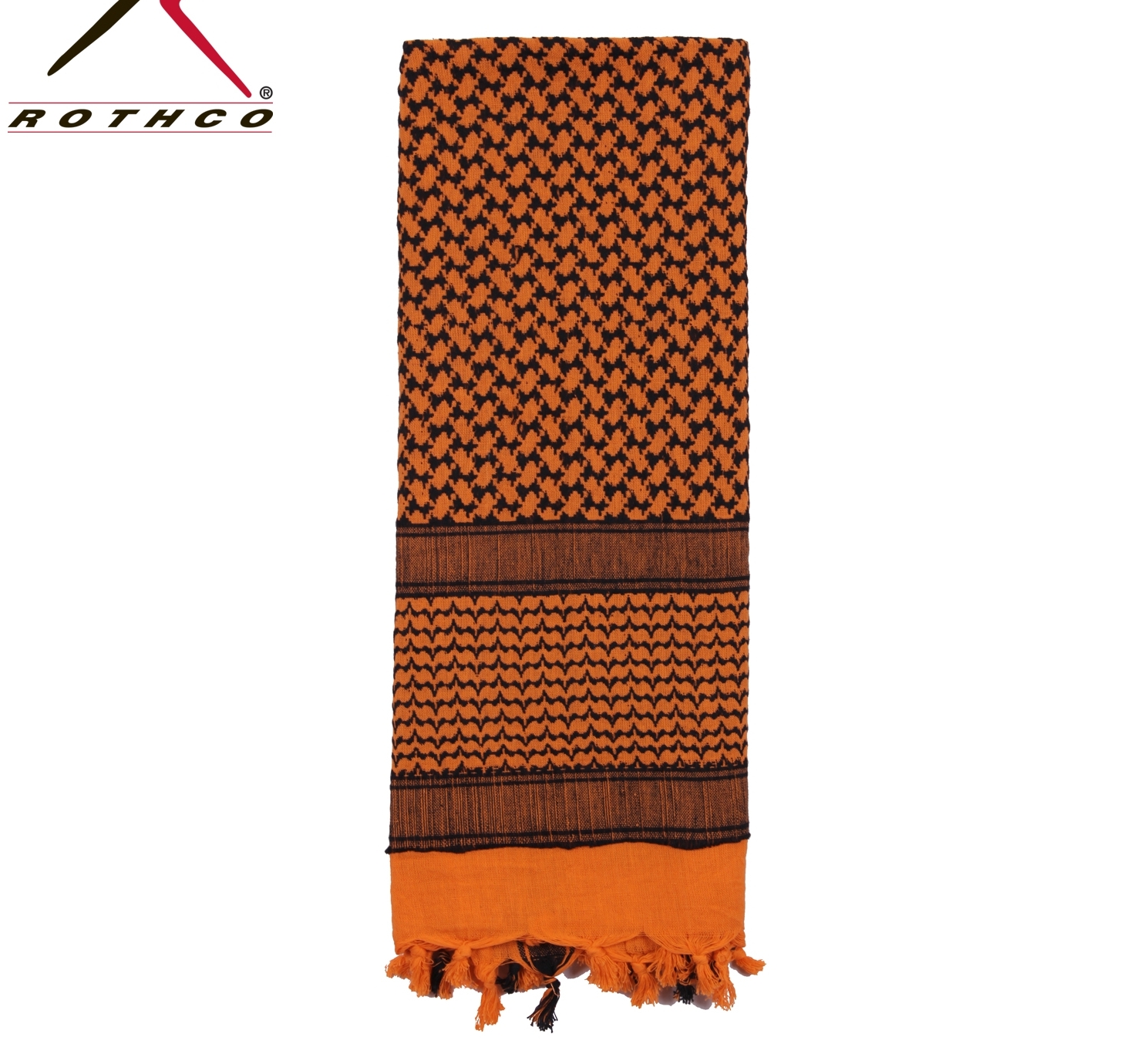 Шарф шемаг оранжевый-черный 8537 идеален для защиты глаз, плеч и шеи от солнца и песка.