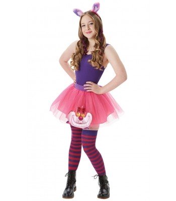 Набор детский Чеширский кот - набор для девочек, который включает в себя розовую юбочку Туту на эластичном ремешке, а также фиолетовые ушки на ободке. Юбка украшена мордочкой чеширского кота.