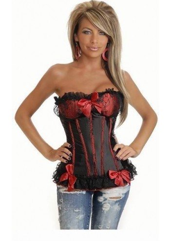 Корсет - вулканический бурлеск с мягкими чашечками, декорированный красными бантами, без бретелек, на молнии сзади и застежками сбоку.