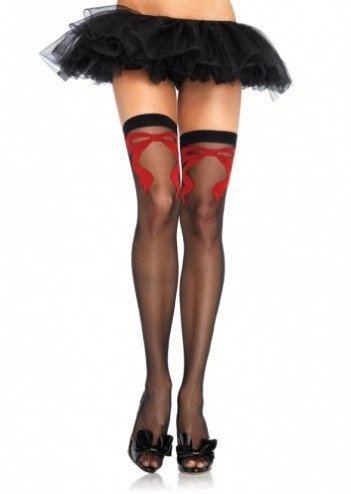 Черные чулки с бантиками - это очень удобные и эластичные чулки с хорошей резинкой. Верхняя часть чулок украшена нарисованными красными бантиками.