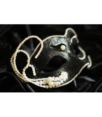 Черная маска Серебряный век изящная маска, выполнена в ретро стиле. Маску дополняет украшение из жемчуга оригинальной формы, завершает образ темное закрученное перо.