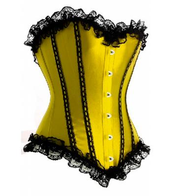 Корсет Золотая заря из желтой атласной ткани и черного кружева в качестве декора. Яркий элемент вашего костюма.
