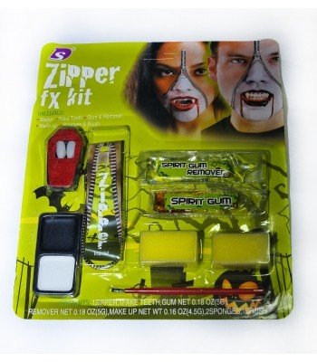Вампирский грим с молнией идеален для Хэллоуина и подобных праздников. В набор входит небольшая молния, тюбик с клеем, тюбик с ремувером, накладные клыки, палитра с черной и белой краской, а также два небольших спонжика и кисть.